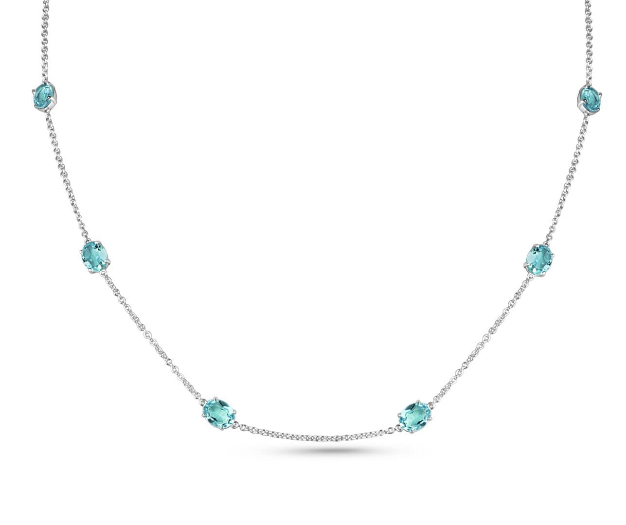 14kt white gold station necklace with oval Montana blue and green sapphires.